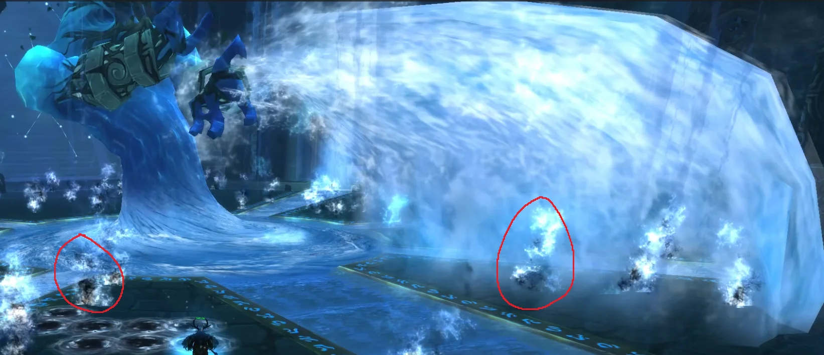 - Dodge moving waterspouts (see red circles)